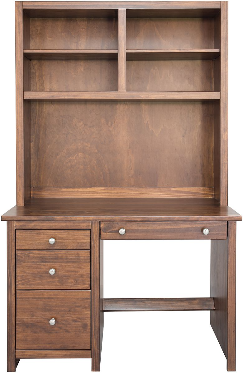 This Home Office desk and hutch set from Mako Wood Furniture features solid pine wood construction and plenty of storage. Made in Canada, it's available in a multitude of finishes. All hardware included with this desk is made of metal.Read More