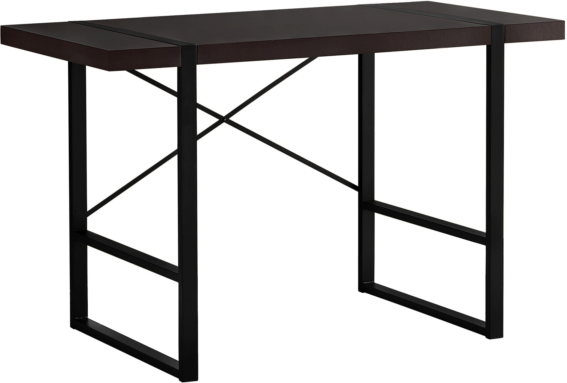 Bold and modern with an industrial inspired design, this versatile computer desk will be a stand-out in your home office space. The black metal tube legs that wrap and frame the thick spacious desk-top, gives the desk an unmistakable presence. Contrast this edgy look with a warm, dark taupe wood-look finish and it can easily fit into any contemporary or modern farmhouse style decor. Just the right size for small spaces, this desk can hold a laptop and some office essentials within easy reach. Assembly is required.