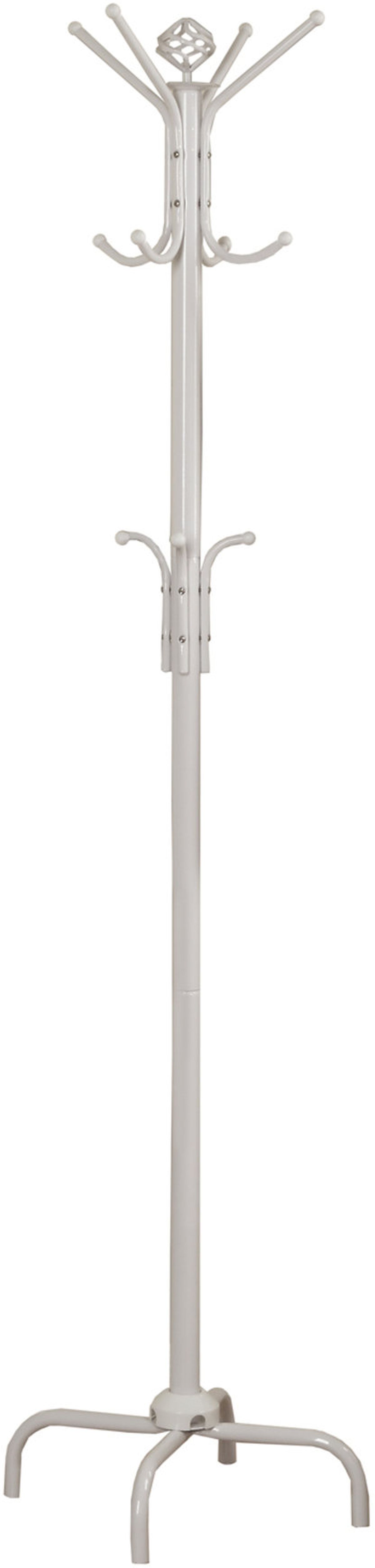 Freely hang your hats, scarves and jackets on this practical coat tree finished in a trendy white metal. Natural and smooth, the coat rack's wide base will help evenly distribute the weight of all your apparel so you don't have to worry about tipping. Ideal in offices, entrances, bedrooms or more, the versatility of this standing coat rack is endless featuring 12 hooks on a double tier format. Your ideal coat rack in small spaces, this model is perfect in the entrance, bedroom or office.