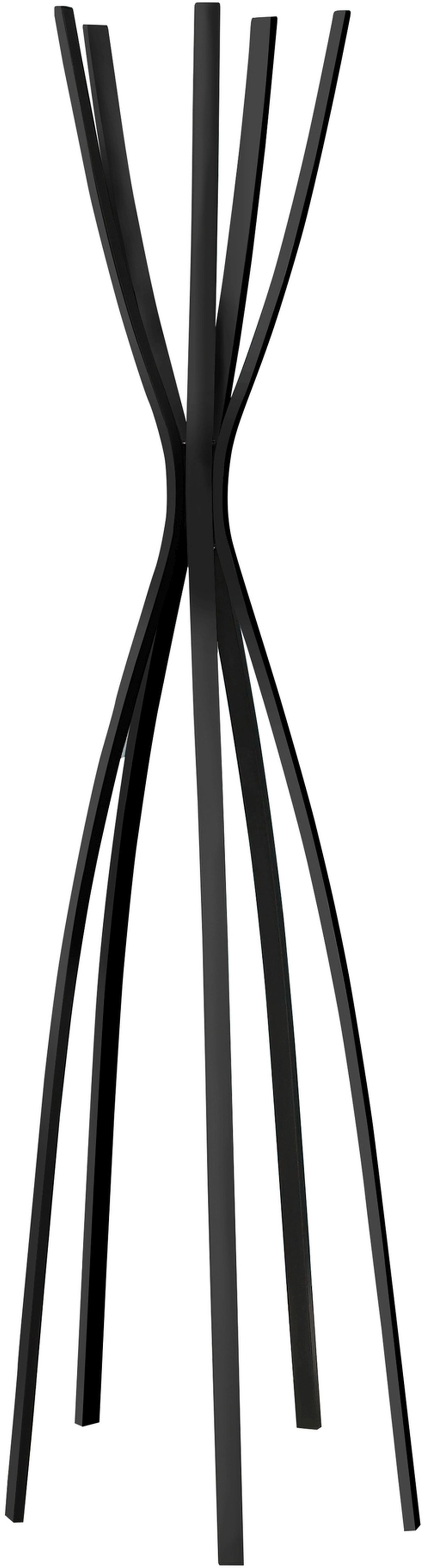 Bring fashion and style to your home with this unique satin black metal coat rack. Use it in your hallway, bedroom, mudroom, bathroom, or home office for a contemporary storage solution. This beautifully designed coat stand offers ample storage with 5 poles to hang your coat, scarves, hats, towels, or robe. Resembling a piece of sculptural art than furniture, this coat rack gives your space that instant upgrade!
