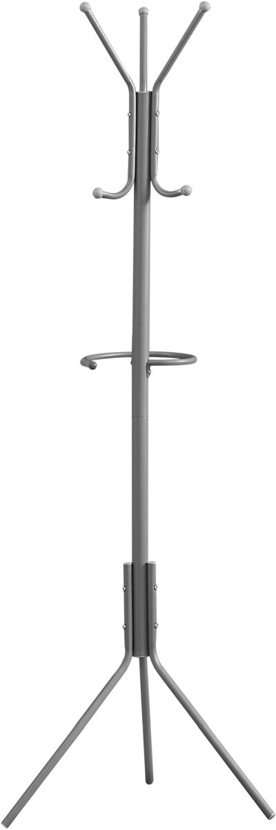 Both convenient and essential in your entrance, living room, family room or bedroom, this free standing coat rack is your ideal accessory to minimize clutter and take up less space in your small home, apartment, condo or dorm. Easy to use, it combines an umbrella holder, 6 hooks and a wide base to catch and evenly distribute the weight of your jackets, hats, scarves and other apparel. In a silver metal finish, this coat tree is a functional item you must have for useful storage. Keep all those accessories together in an organized way.Read More