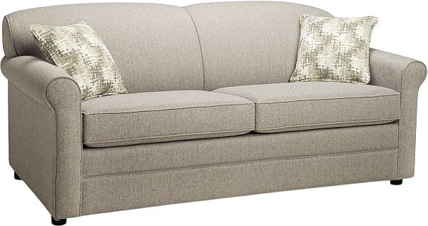 The Superstyle Furniture 932 loveseat bed features a tight back and round black plastic legs.